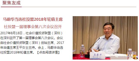 Newsletter第167期:马蔚华当选社会价值投资联盟2018年轮值主席