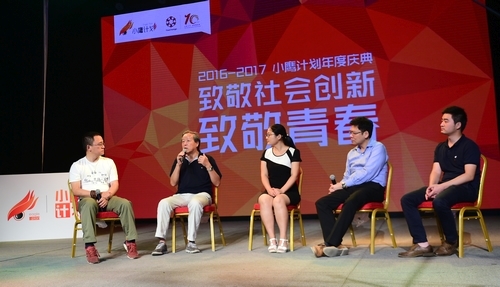 【图】从左往右依次是资深媒体人郭宇宽、21世纪教育研究院院长杨东平、2015小鹰李静、微软公司大中华区首席战略官彭壮壮、2011小鹰朱晓明