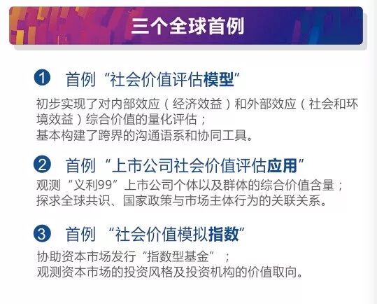 首次将社会价值量化评估模型应用于上市公司(“义利99”);