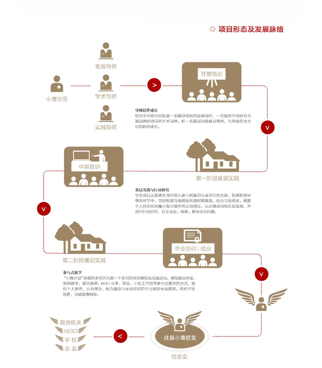 小鹰计划 是友成基金会发起的青年发展与培养项目,旨在发现和支持具有天下襟怀的青年,沉潜中国乡村,用一年时间,开展公益实践,从而超越自我,认识社会,成长为行动力和影响力兼具的领袖型人才。