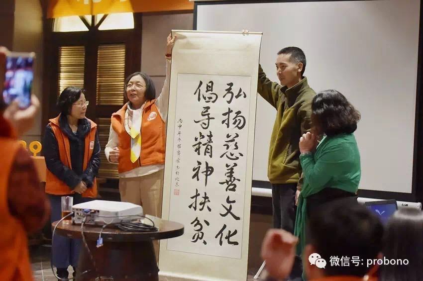 “彭艳女士正是让我看到了这种精神,她是北京惠泽人公益发展中心理事、环境保护与社会发展独立咨询专家,但是每次的公益活动,我都能在现场看到她的身影以及她有条不紊的安排,彭艳女士让我感受到了专业志愿者对于NGO的力量,所以我以个人身份加入了博能,同时也代表友成基金会为博能提供资金支持”。王平女士还特别邀请了友成基金会环境顾问罗齐家先生到场分享他的慈善之路并主持了罗先生向博能基金会赠送一副墨宝的仪式。 她相信并希望博能成为成就“精神扶贫为主、物质扶贫为辅”的典范。