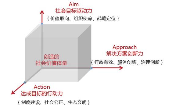三A是基于在对组织行为研究基础之上提出的系统思路。正如平衡记分卡是从战略的角度而不是以财务量度为主来评估绩效,以使组织“策略”能够转变为“行动”,三A正是通过对其目标(Aim)、运行模式(Approach)和执行力(Action)三者的分析,得出一个组织创造社会价值的能力。